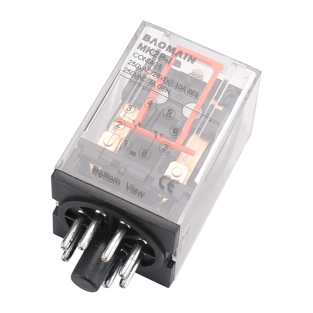 This MK2P-I model is a electromagnetic power relay designed for reliable circuit control in various applications. It features a DPDT (2 Form C) contact configuration, providing two sets of Normally Open and Normally Closed contacts to switch two circuits independently.