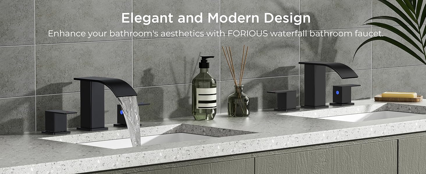 Elegant and Modern Design: Enhance your bathroom's aesthetics with our waterfall bathroom faucet 3 hole. Its sleek matte black finish not only looks luxurious but also resists tarnishing and fingerprints, keeping your bathroom looking pristine over time