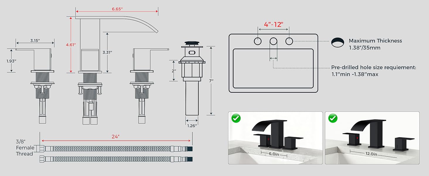 Easy Installation: Our bathroom faucet 3 hole come with quick-connect hoses and all necessary parts, including color-coded water lines, making the installation process straightforward and hassle-free, without the need for a professional plumber