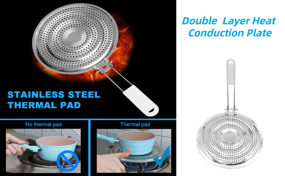 【Durable And Easy To Clean】Made from quality stainless steel, the heat diffuser is built to last. It is resistant to stains, making it easy to clean after each use. Simply wipe it down with a damp cloth.