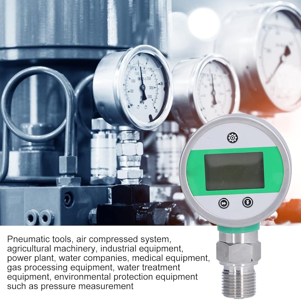 HG 601YB Digital Pressure, Stainless Steel Material, Reading, LCD Display with Blue Backlight, DC 24V Voltage, for Pneumatic Tools Compressed Air Systems