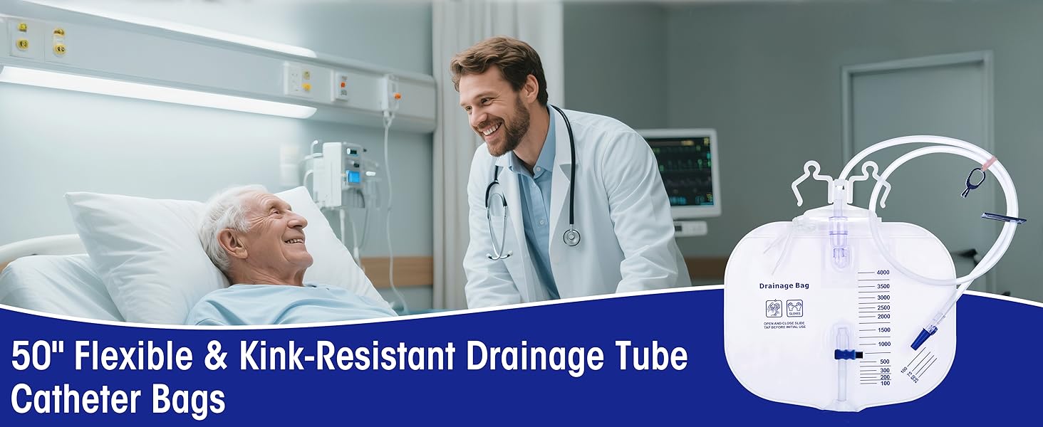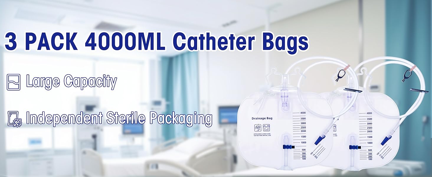 3-Pack Urinary Drainage Bag: High capacity 4000ml/cc catheter bag with 50 inch thicken drainage tube,each drainage bag is individually sealed to ensure cleanliness and ease of storage, making it easy to carry
