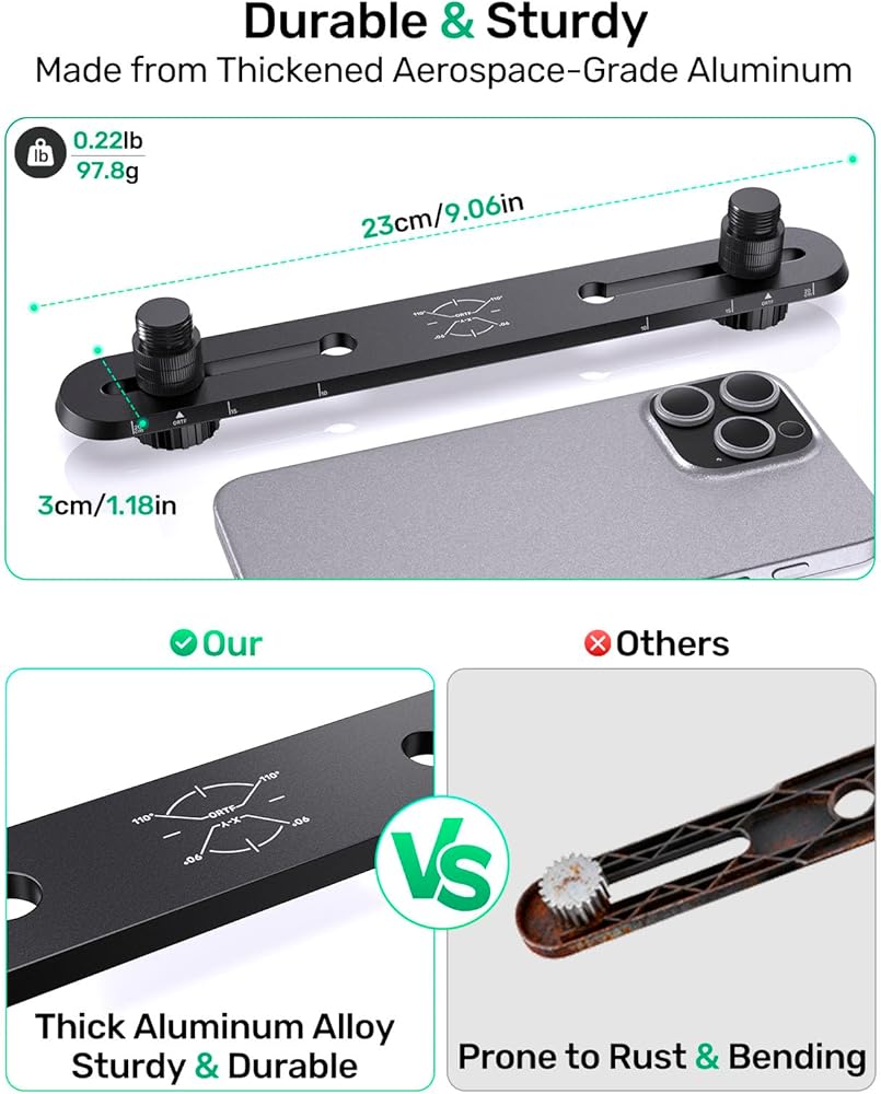 【Tool-Free 30-Second Setup】 Adjust the length freely between 2.8" and 7.9" (7-20 cm) using the ergonomic quick-lock knob—no wrench or other tools required. Perfect for content creators and mobile podcasters who need to switch between different recording setups quickly, with one-time setup for long-term use.