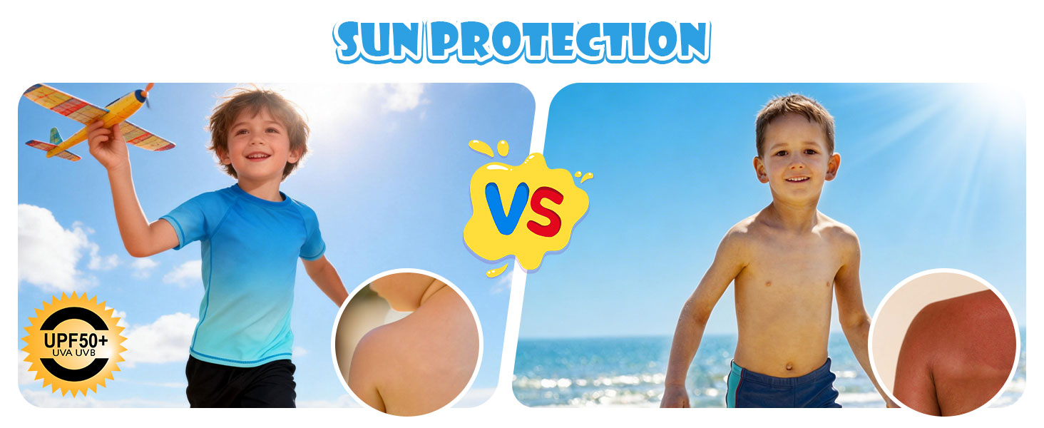 Lightweight & Quick Dry Fabric: Made from lightweight, breathable, quick-dry polyester fabric, this boys swim shirt wicks moisture away from the skin to keep kids cool, dry, and comfortable in hot weather