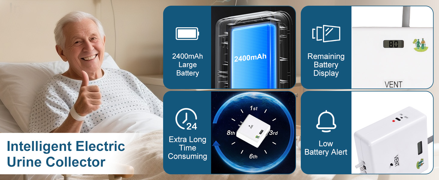 【Large Capacity Urine Drainage Bag】Comes with a 2000ml spacious urinary bag that reduces the need for constant emptying, offering reliable support during rest, travel, or long hours of use.