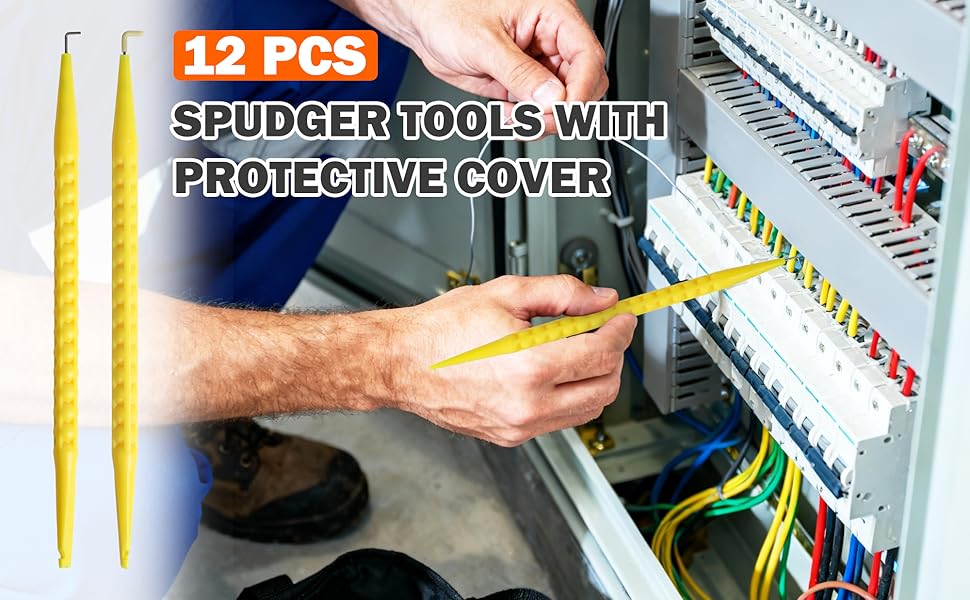 12 PCS Spudgers Tools Set: You will receive 12 spudger tools, each featuring a protective plastic head cover, all housed in a convenient plastic case. The generous quantity is ideal for professionals in telecommunications, data communication, and alarm installation, ensuring you have backups for extended projects or accidental misplacement