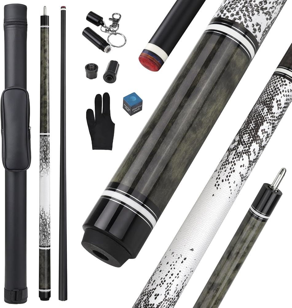 【Professional Pool Cue】 The Elraxw GF-3DWB series pool cue stick features a 2-piece design with standard length and weight (58inch,19oz), and come with cue case, gloves, cue tip pricker and chalks, is easy to carry and is perfect for billiards players or as a gift