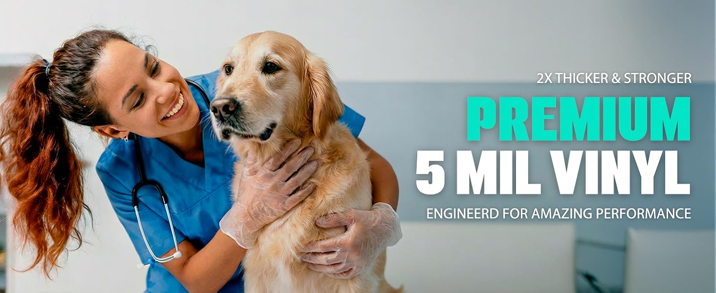 ✅MATERIAL – Our Medical Examination Vinyl Gloves are designed for healthcare and food handling. They are powder and latex free clear PVC & DOP vinyl, with beaded cuffs. Soft and durable, they will help you provide reliable protection for your hands and whole causing no problems to the skin.