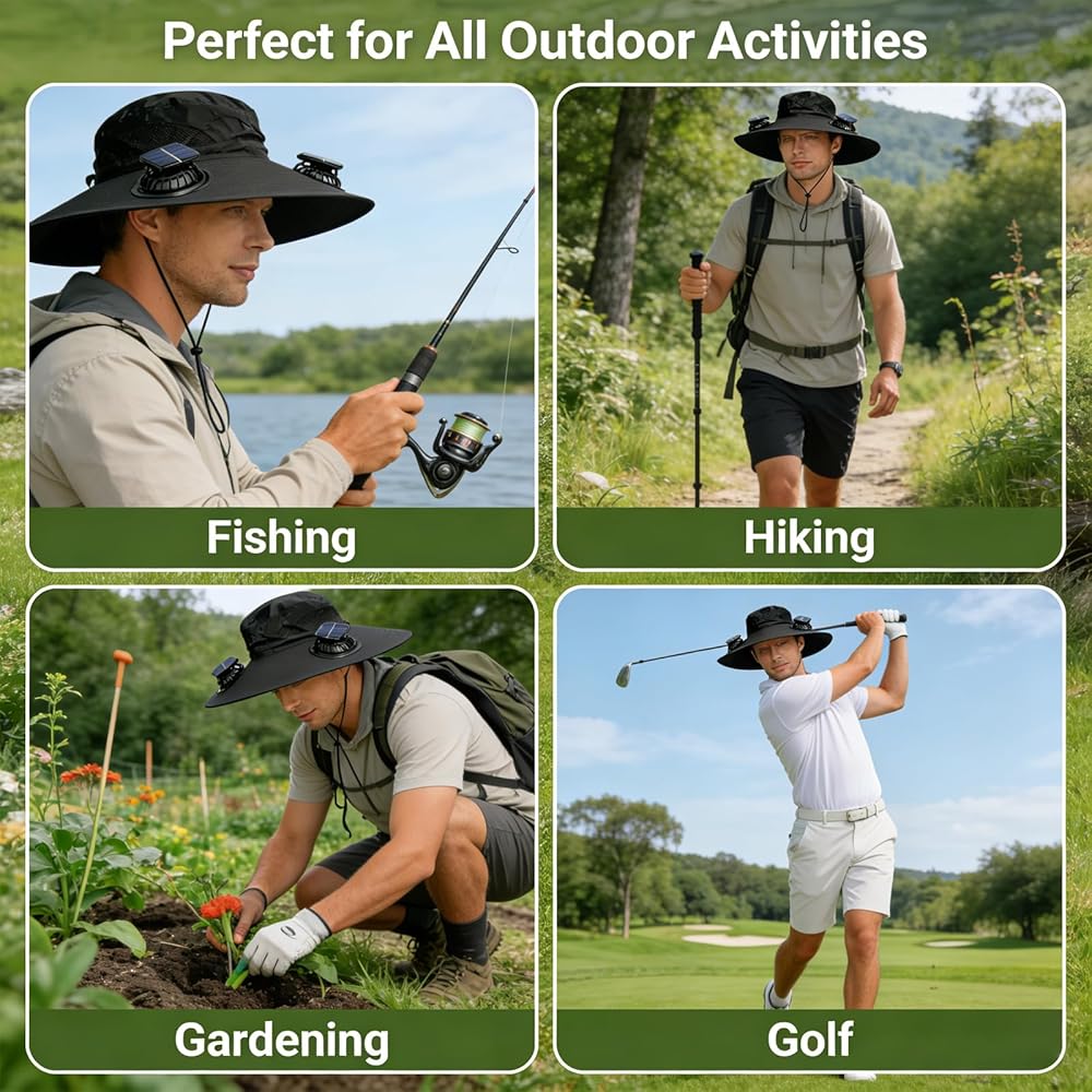 All - encompassing Sun Shield:The wide - brim design of our solar powered fan hat is a game - changer. It effectively blocks UV rays, providing comprehensive protection for your face and neck. Be it in the garden doing some gardening or on a golf course, this hat shields you from the sun's harmful rays.