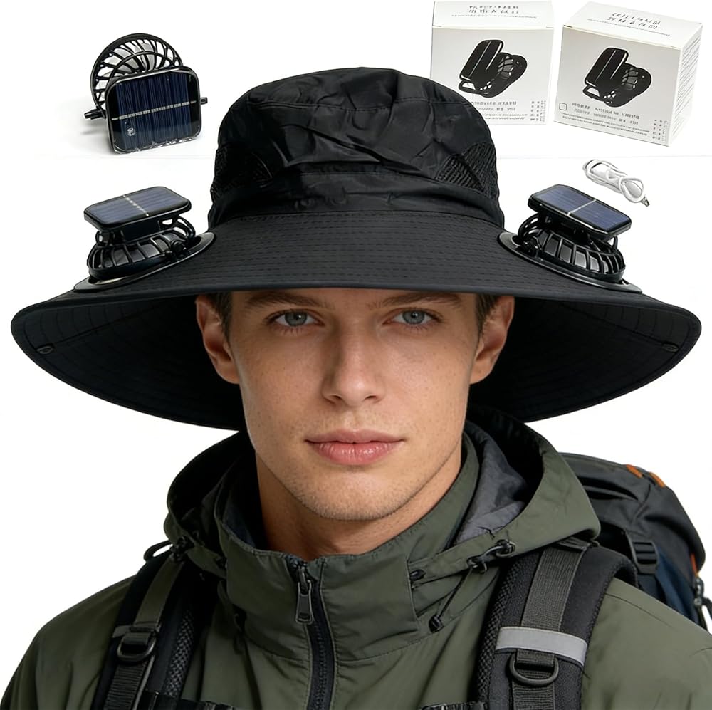 Solar Fan Hat, Hat with Fans Solar Power,Solar Powered Fan Hat for Outdoor Fishing, Hiking Gardening, USB Solar Charging Includes 2 Solar Fans(Black-XL)