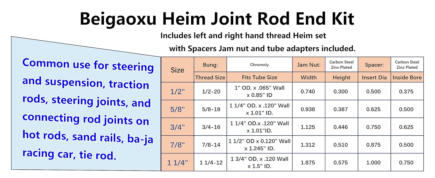 - 3/4 "to 5/8" high spacer , heims rod end (4 pieces)