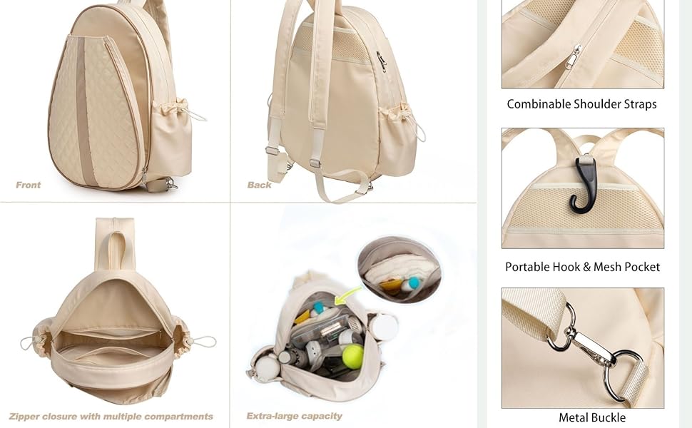 【Quilted Lightness】- Only 1.1 lb—rip-stop quilted polyester + PU coating repels drizzle and court splash; adjustable crossbody/single/dual straps switch fast from bike commute to baseline sprint.