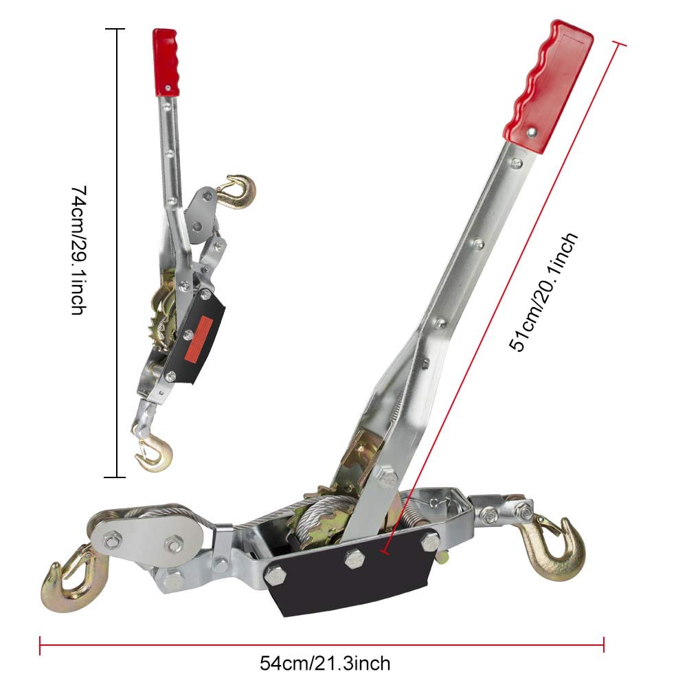 This heavy-duty 8000lb hand hoist tool is an essential piece of equipment for pulling, lifting, and securing heavy loads in workshops, garages, and job sites. Featuring a robust manual lever-operated ratchet mechanism, this cable winch provides reliable mechanical advantage for moving vehicles, machinery, and other substantial objects with controlled precision. The durable steel construction ensures long-lasting performance under demanding conditions, while the integrated cable system delivers smooth, consistent pulling power. Equipped with heavy-duty hooks at both ends, this puller offers secure attachment points for various applications including vehicle recovery, equipment positioning, and load tensioning. The ergonomic red handle provides comfortable grip and leverage during operation, allowing you to generate significant pulling force with minimal effort. The ratcheting mechanism locks securely to maintain tension and prevent load slippage, giving you confidence when working with heavy items. Whether you're a professional mechanic, contractor, or DIY enthusiast tackling challenging projects, this versatile hand winch delivers the power and control you need to get the job done safely and efficiently.