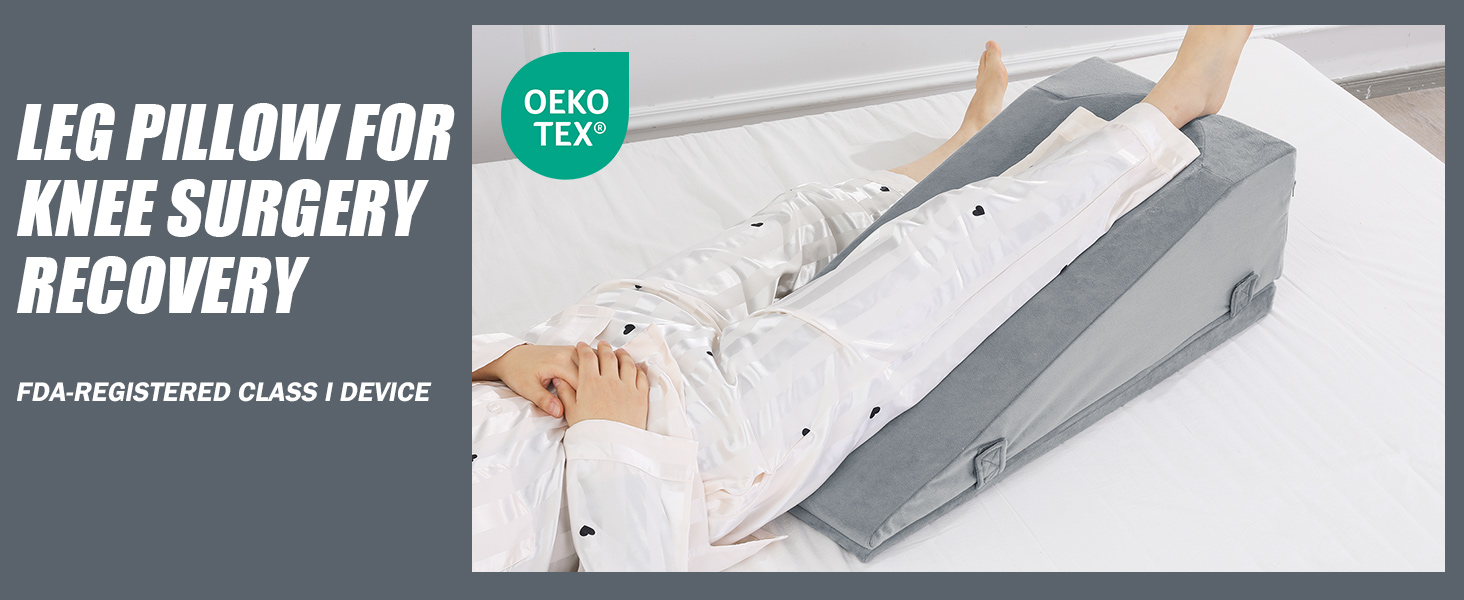 Ergonomic post-operative wedge pillow: ROYALAY leg lifter for after knee surgery The Royalay leg lifter for after knee surgery is the right Angle for recovery, leg injury or to reduce swelling and improve blood circulation. Patent Pending.