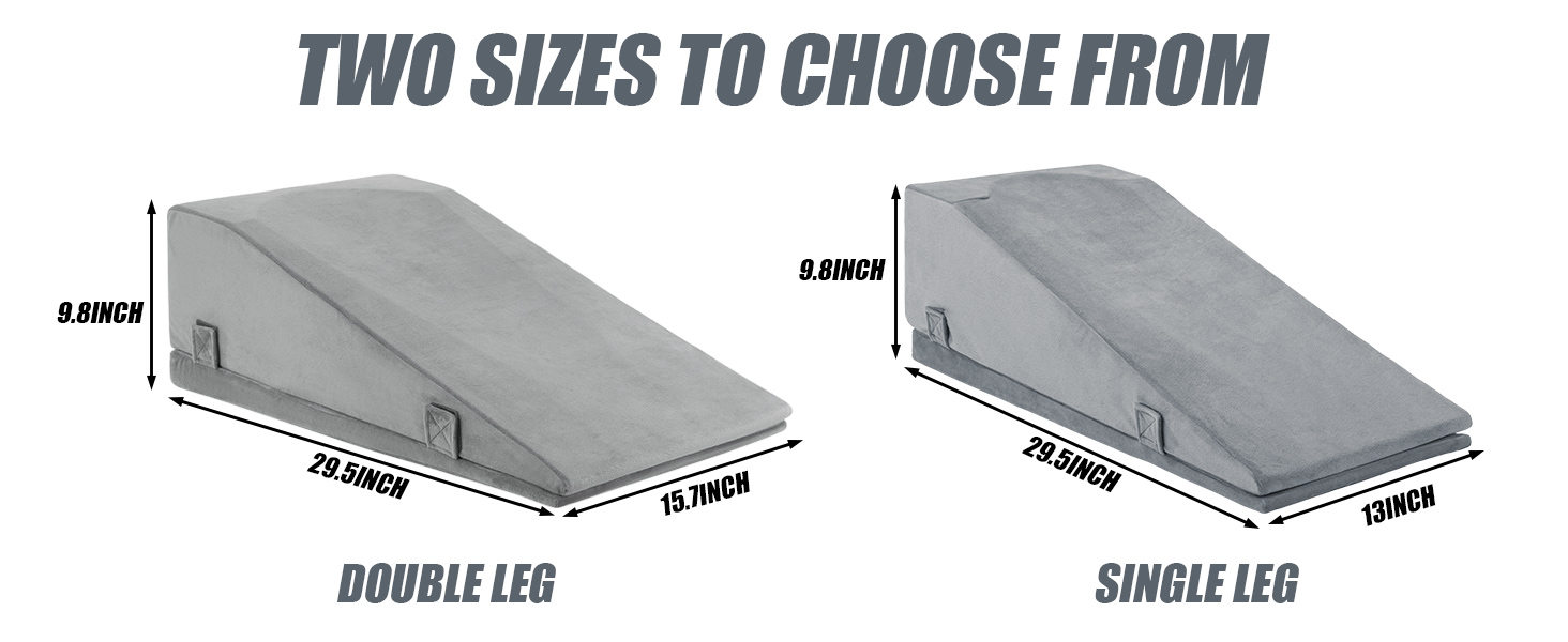 Adjustable height: Our leg elevation pillows for after surgery are available in 7.9 "and 9.8" heights, enough to raise your entire leg above heart level, with hooks and loops between the two pillows to hold in place, very sturdy.