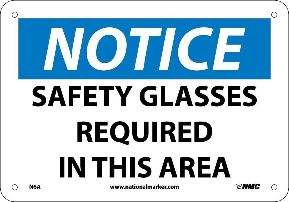 علامة National Marker N6A "ملاحظة، نظارات السلامة مطلوبة في هذه المنطقة"، لافتة، ألومنيوم، 7 بوصة × 10 بوصة، 0.040 بوصة