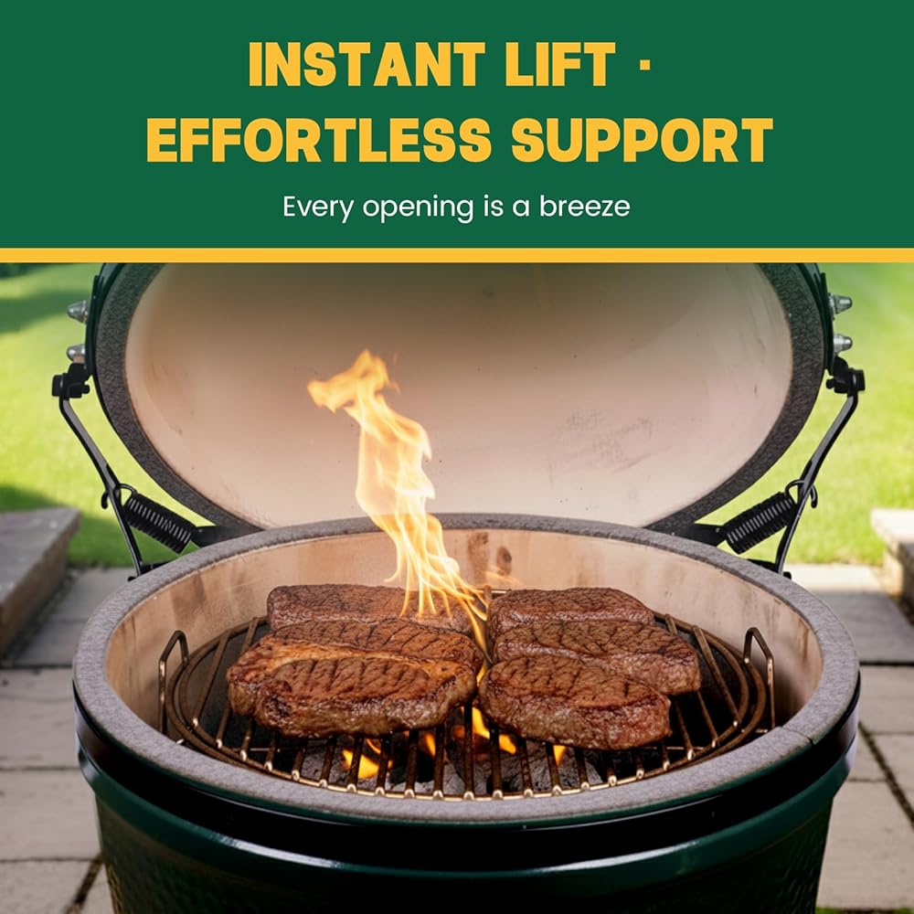 【EFFORTLESS LID CONTROL】 Provides powerful spring assistance to counterbalance the heavy lid. Enables smooth and easy one-handed opening and closing, significantly improving your grilling safety and overall experience.