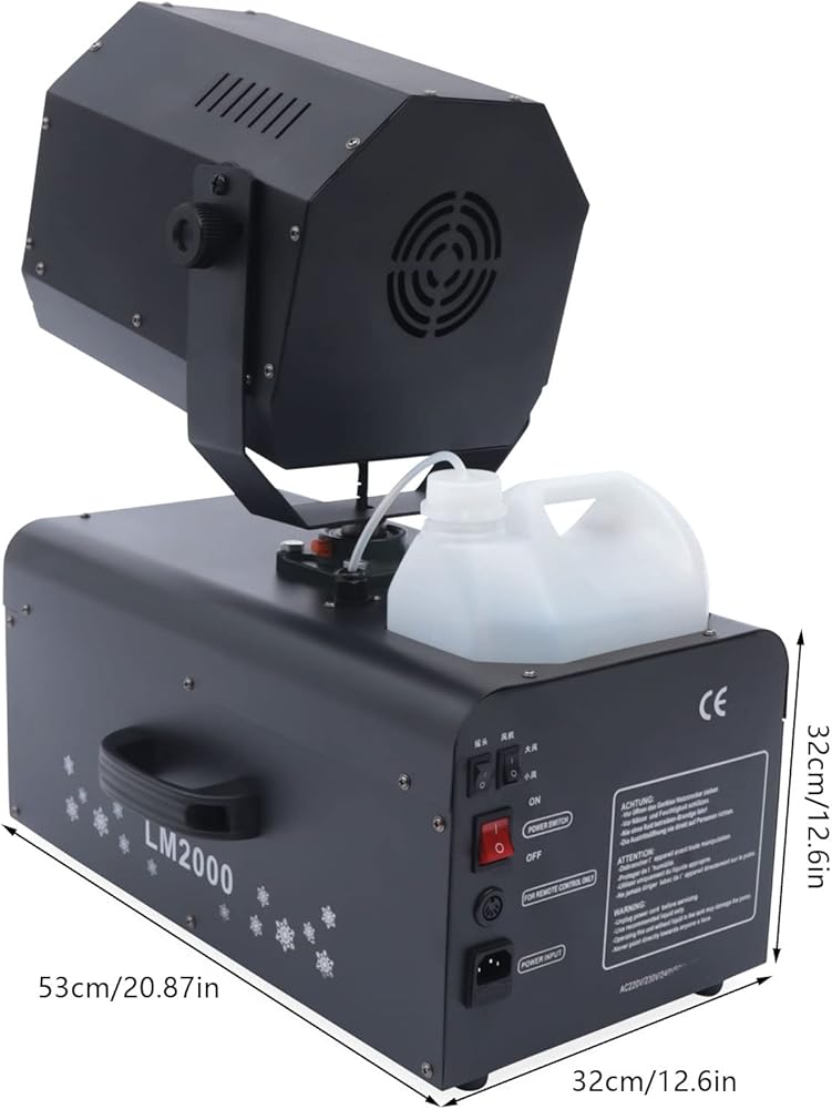 • High-power operation: The 2000w machine operates efficiently, generating strong air flow and large volume of snow. So it can create realistic snow scenes