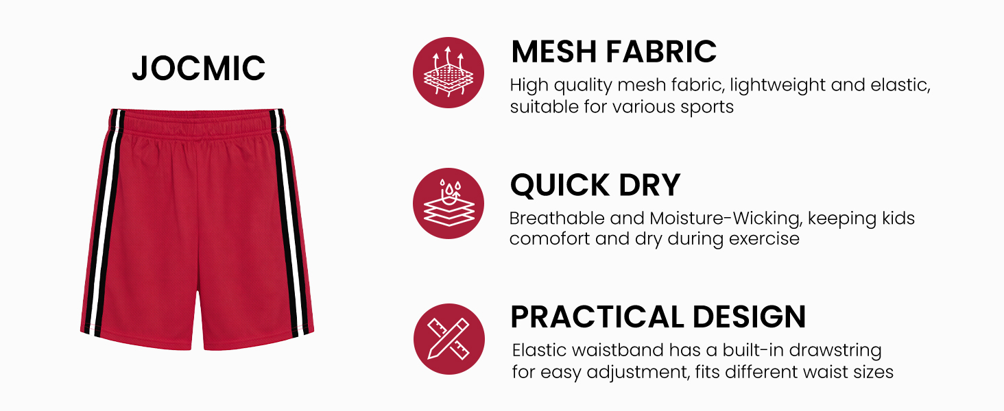 Breathable & Quick-Dry Mesh: Crafted from soft, breathable mesh, these boys athletic shorts wick sweat fast and keep your active boy cool, dry, and comfortable during sports or everyday play
