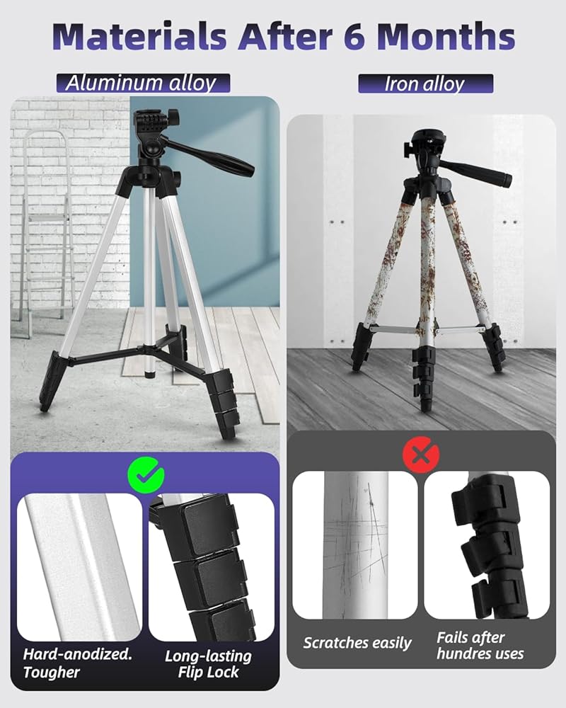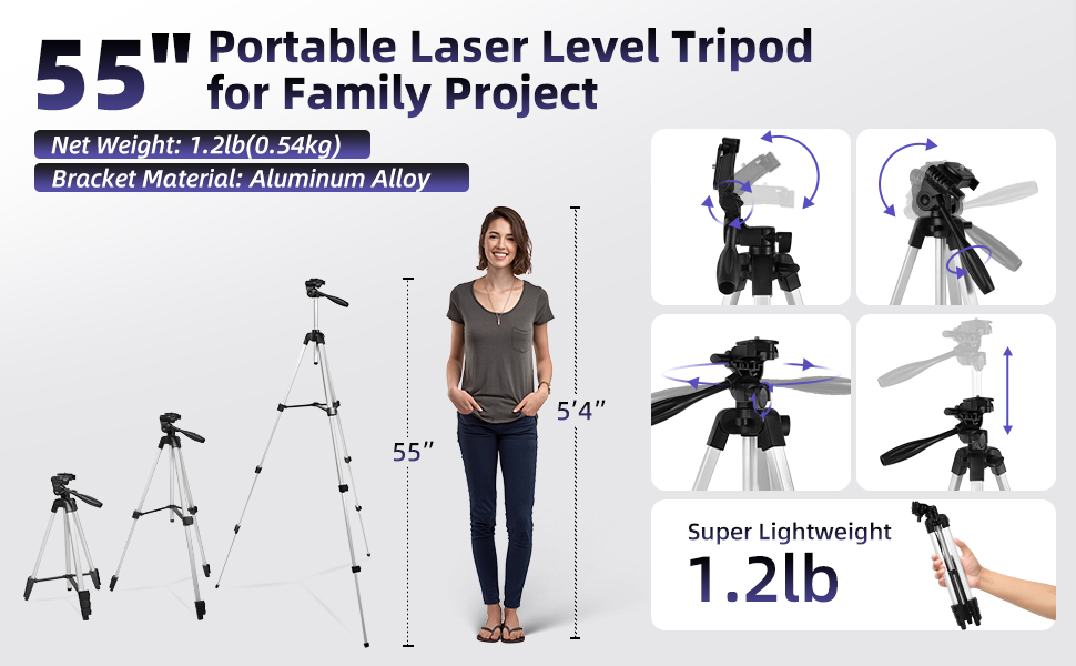 Military-Grade Laser Level Tripod: Aerospace aluminum alloy body & reinforced flip locks withstand 50k+ adjustments - keeps your laser level steady through garage projects or outdoor fence repairs