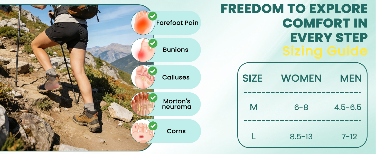 【FOREFOOT PAIN RELIEF】Designed to cushion the ball of your foot where pressure hits hardest, these metatarsal pads help alleviate discomfort from metatarsalgia, Morton's neuroma, sesamoiditis, forefoot pain, provide targeted comfort for daily walking, running, or long hours of standing.