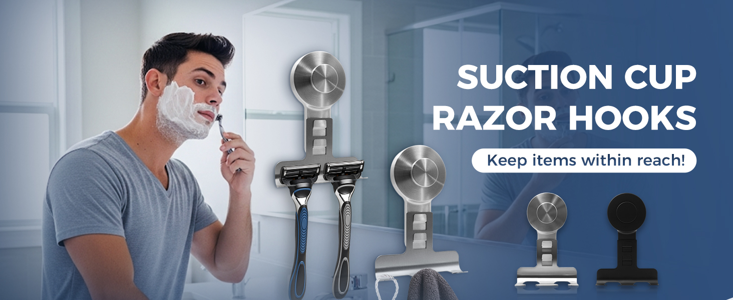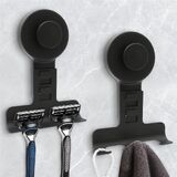【DOUBLE HOOKS,ZERO INSTALL STRESS】Mount both shower razor holders for wall in seconds:Press→Twist→Lock.No tools/damage on tiles&glass