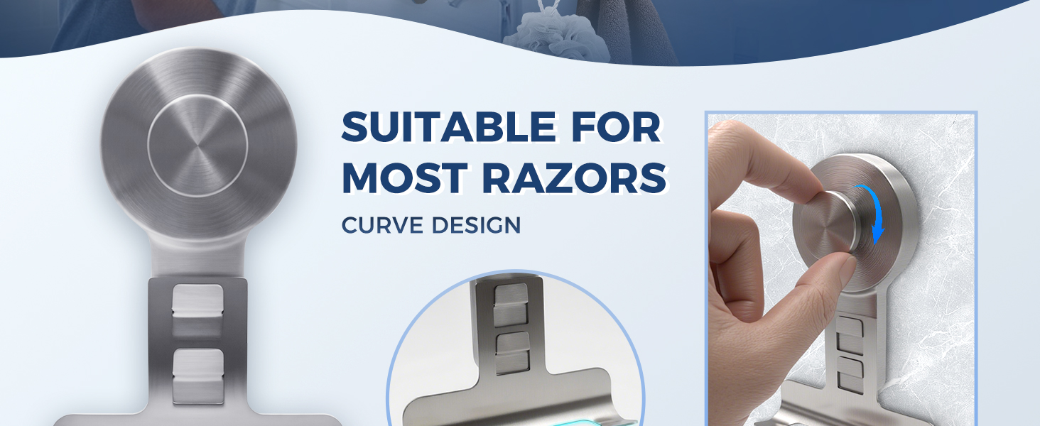 【METAL DURABILITY】2-pack stainless steel razor holders with 15lbs(7KG) load capacity!Rust-proof construction and knob-lock tech for shake-proof grip in showers