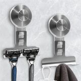 Suction Cup Razor Holder for Shower Wall 2 Pack,Heavy-Duty 15lbs Suction Hooks for Razor,Towel,Phone,Loofah, Removable Damage-Free Metal Shower Hook,Shaver Holder(Silver)