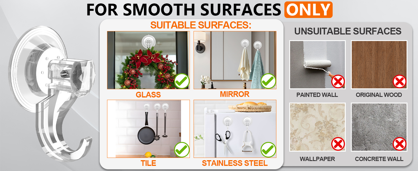 قابلة للإزالة وإعادة الاستخدام: للإزالة، ما عليك سوى رفع الخطاف وسحب العروة الصغيرة لإطلاق الشفط - دون ترك أي ضرر أو بقايا. إذا تشوه كوب الشفط أو فقد قبضته، انقعه في ماء دافئ، واتركه يجف بالهواء، وهو جيد كالجديد.