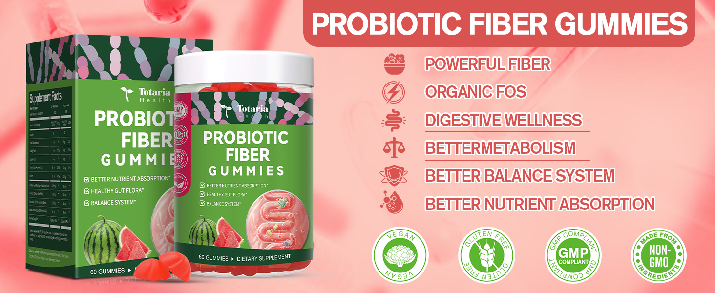 DELICIOUS & CONVENIENT FIBER SOLUTION: Say goodbye to the struggle of consuming enough fiber through diet alone. Totaria Prebiotic Fiber Gummies offer a delicious and convenient way to meet your daily fiber needs. With a great taste and easy-to-consume form, these watermelon flavor fiber gummies are the perfect addition to any diet, whether you're on the go or simply looking for a simple way to increase your fiber intake. Enjoy the satisfaction of knowing you're supporting your digestive health and overall wellness with every gummy.