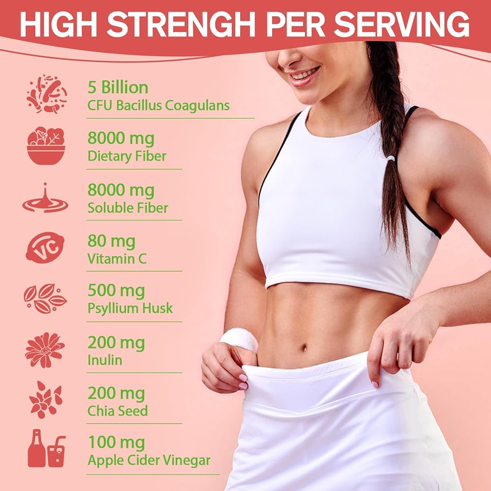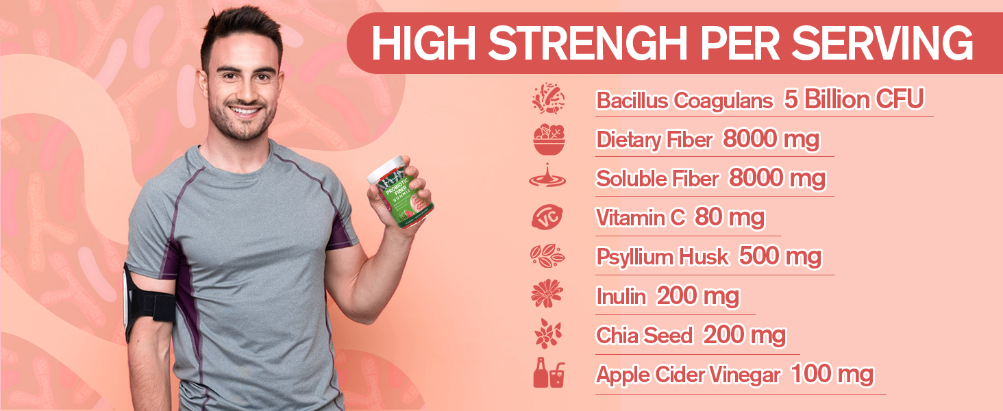 PROBIOTIC SYNERGY: Extra strength fiber supplement, Totaria fiber gummies contain 5 billion CFU of Bacillus coagulans per serving, a potent probiotic strain that works synergistically with the soluble fiber to enhance digestive wellness. Meanwhile, this beneficial bacteria helps to crowd out harmful microorganisms and improve nutrient absorption, making our gummies an excellent choice for those seeking a natural and effective way for bettrer gut health.
