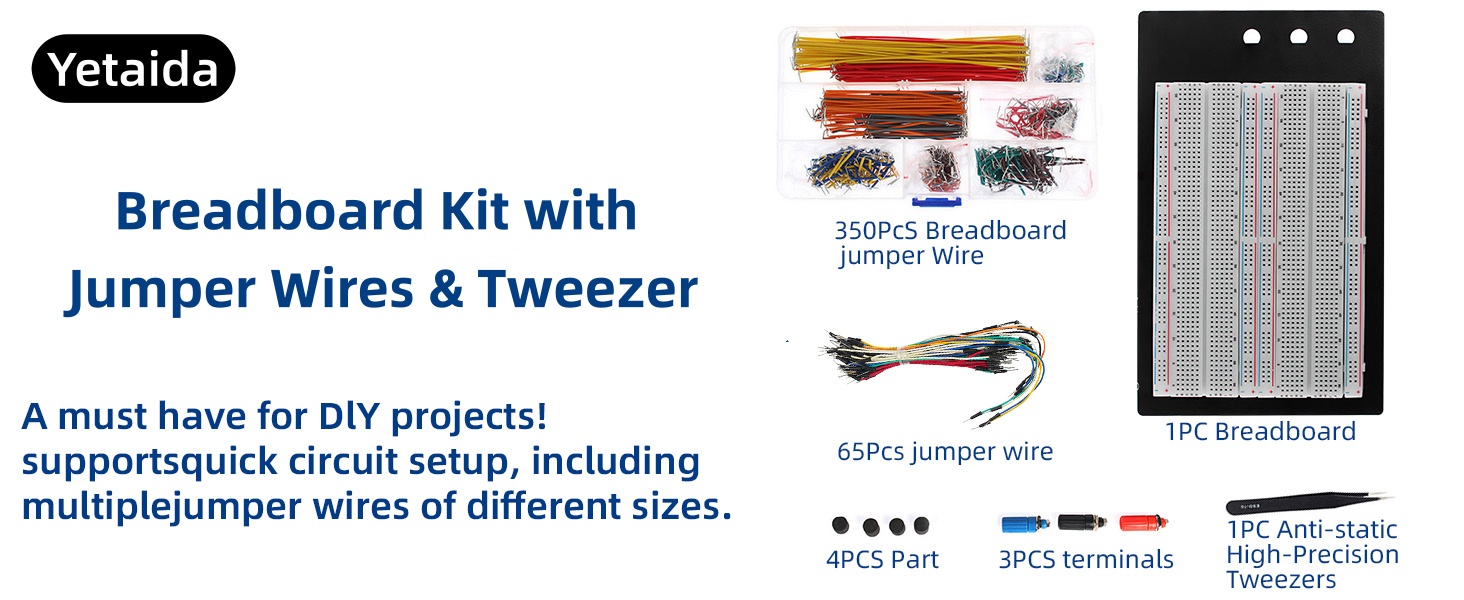 ⭐️Product Includes: This breadboard kit includes 1 x 1660 breadboard, 350 x Jumper Wires, 65 x Flexible Breadboard Jumper Wires, and 1 x tweezer. It is ready to use out of the box and can meet almost all prototype development needs.