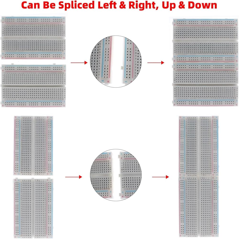 ⭐️Widely Applicable: This breadboard kit is compatible with Arduino, Raspberry Pi, STM32, and other common development boards, facilitating seamless collaboration. You can use it for circuit debugging, sensor modules, robotics projects, or electronic courses. It is an ideal choice for beginners in electronics and professional technical engineers.