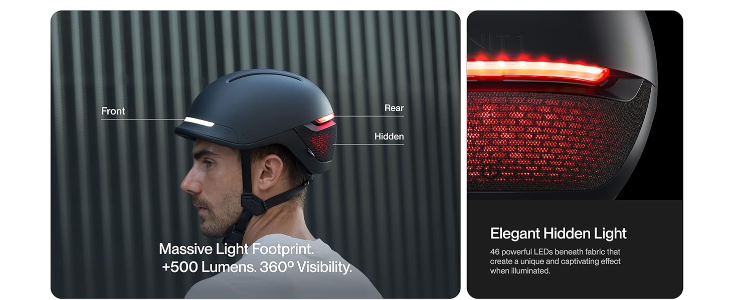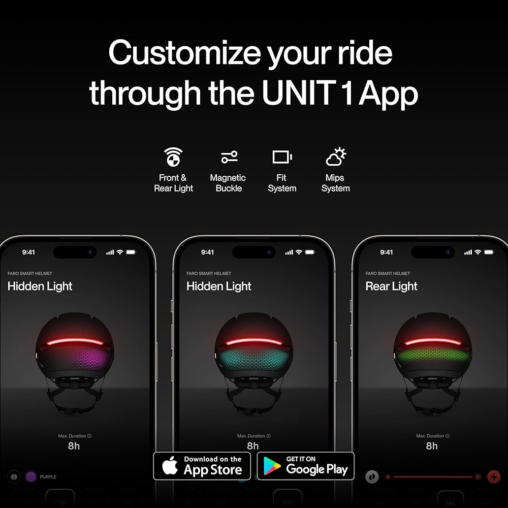 Weatherproof Performance & App Control: Rated IPX6 waterproof to withstand heavy rain and harsh commuting conditions. Use the UNIT 1 App to monitor battery life, customize RGB light colors, and toggle "Flash" or "Steady" modes to match your riding environment and optimize battery runtime.