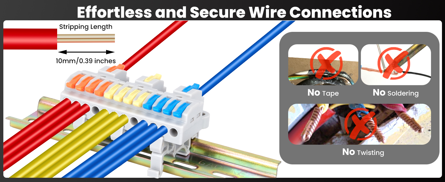 COMPATIBILITY: TOKCKYBL electrical wire connector can connect solid wire (AWG28-12), stranded wires (AWG28-12) and flexible wires (AWG 28-14)