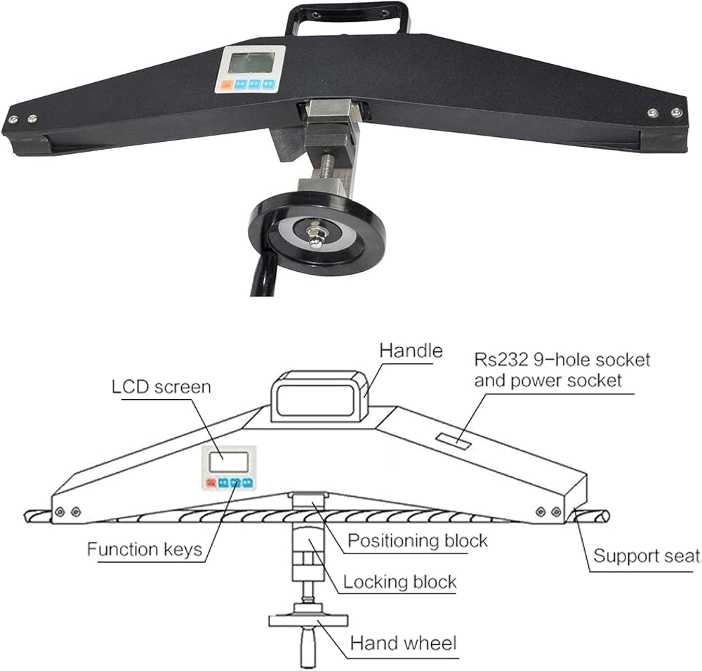◆ Note: During the test, align the highest point of the rope with the positioning block and press the rope to be measured on the positioning block.Loosen the locking handle and the measured rope passes between the locking block and the positioning block. The two supporting seats are in complete contact with the rope. Tighten the locking handle and press the measured rope tightly on the positioning block. The displayed value is the actual tension force value of the measured rope.