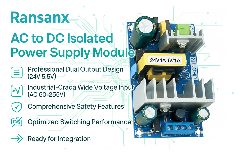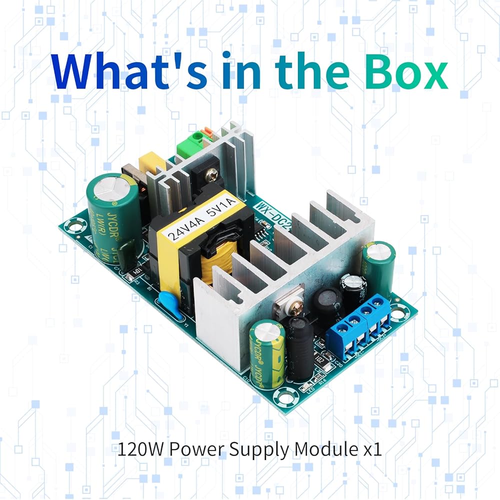 AC to DC Isolated Power Supply Module 120W, Dual Output DC 24V 4A & 5V 1A, Wide Input AC 90–256V 50-60Hz, Industrial Grade Power Supply for Electronic Equipment, Solar PV Systems