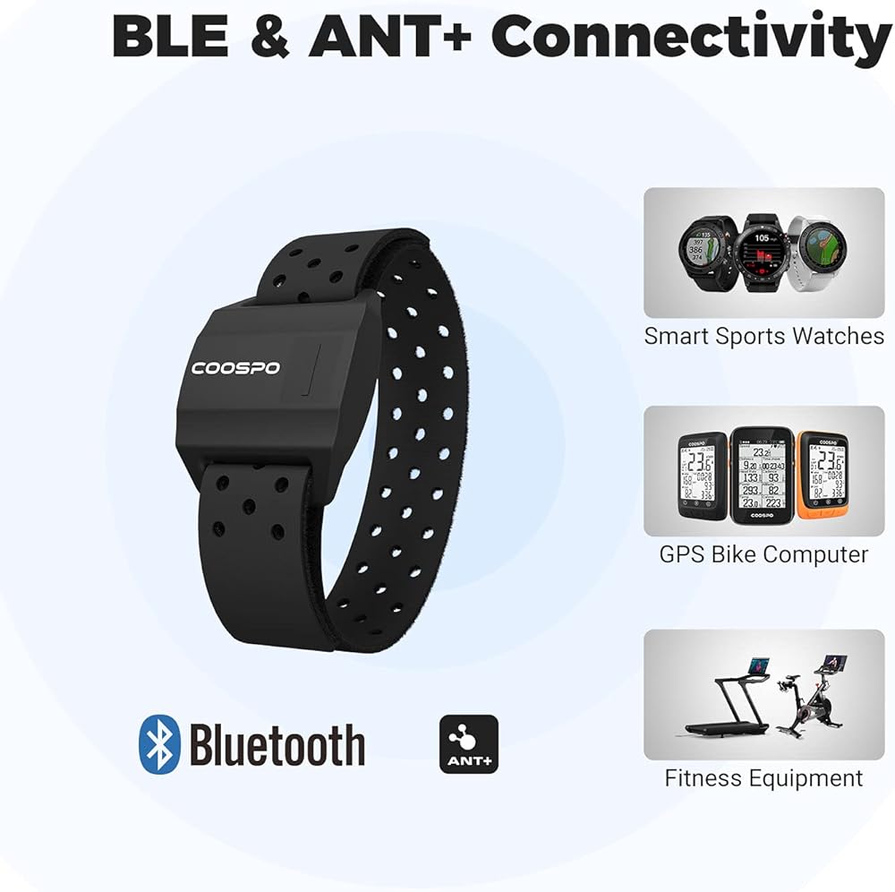 CooSpo Heart Rate Monitor Armband: Patented optical sensor technology for highly accurate measurements of heart rate. It supports continuously measuring real-time heart rate data during exercise.HW706 armband heart rate monitor can help you track and capture real-time heart rate, training zones, and calories burned on your smartphone or tablet with compatible training apps.