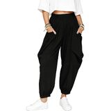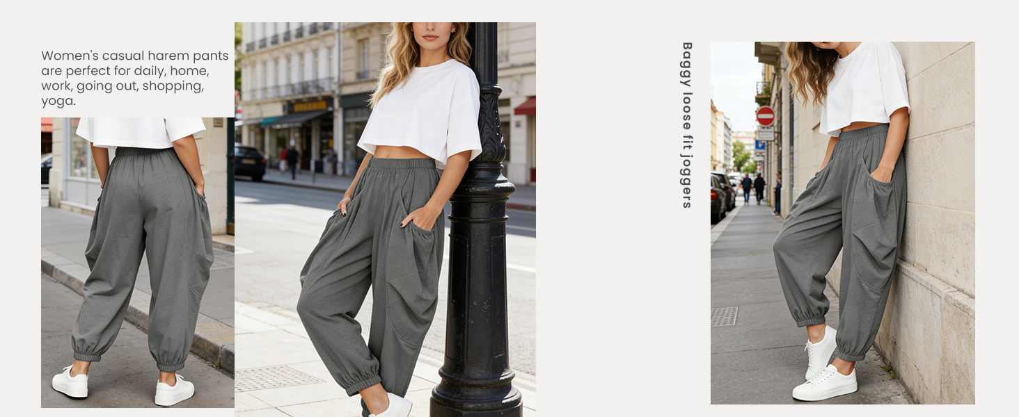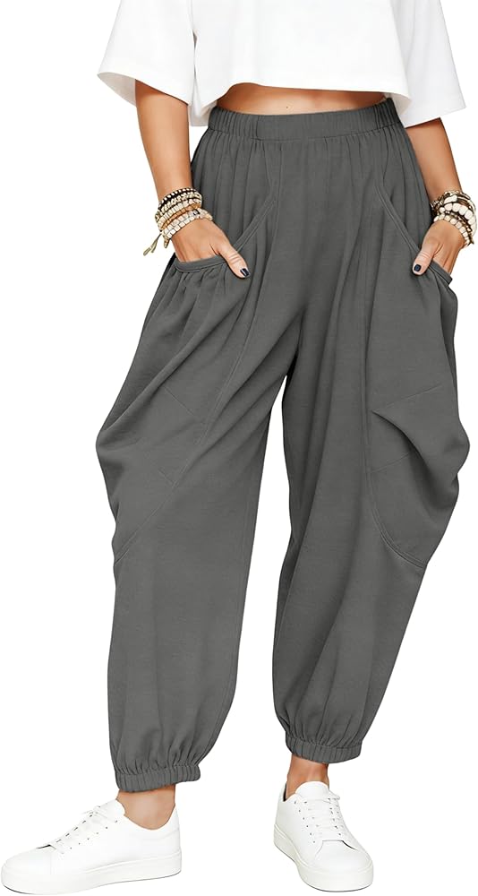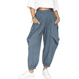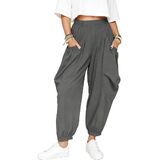 Feature: These women's harem pants feature an elastic waist, oversized balloon silhouette, side pockets, and elastic cuffs