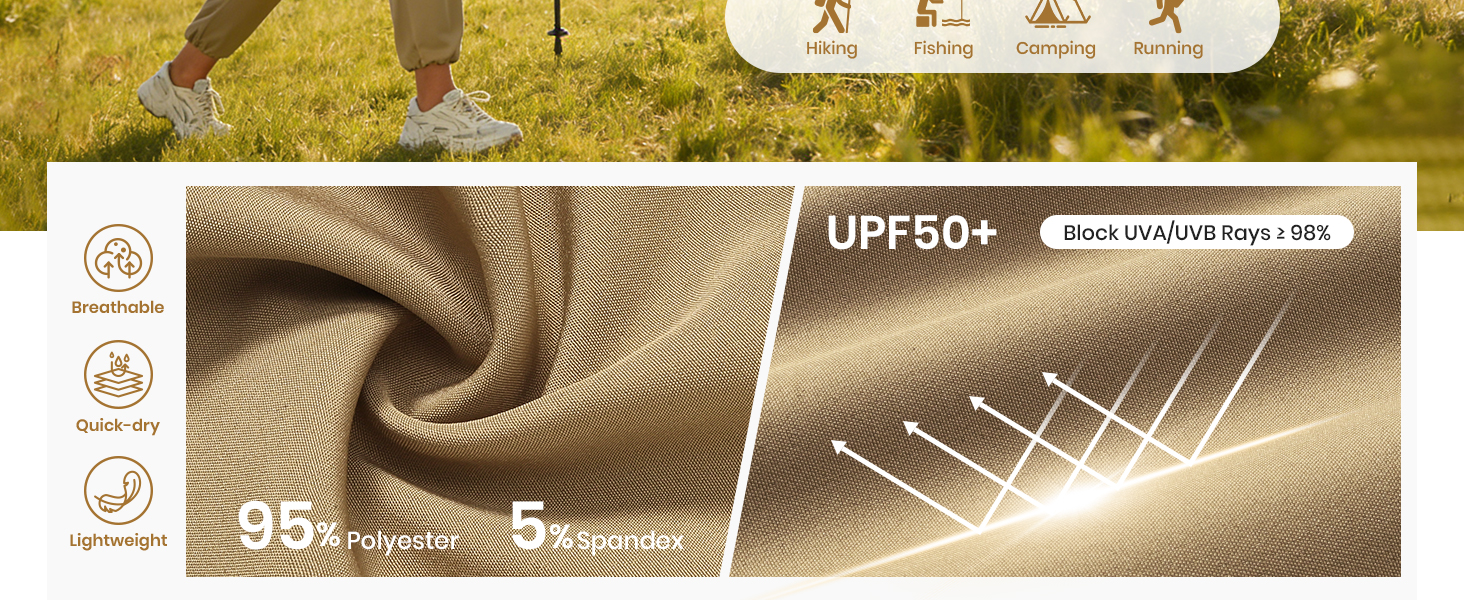 ➤Hiking Pants Women--Made with 95% polyester and 5% spandex, these women's lightweight hiking pants feel soft against skin but hold up to brushy trails or rocky paths:the fabric of women's hiking pants resists minor snags,and the quick-dry property means sweat won't leave you damp for hours