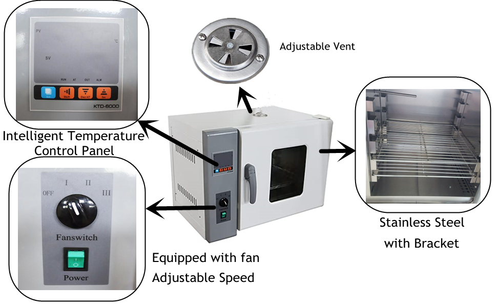 【Widely Used】This device is widely used in items drying,baking and heat treatment in the laboratory of industrial and mining enterprises,colleges and universities,scientific research institutes,health care.