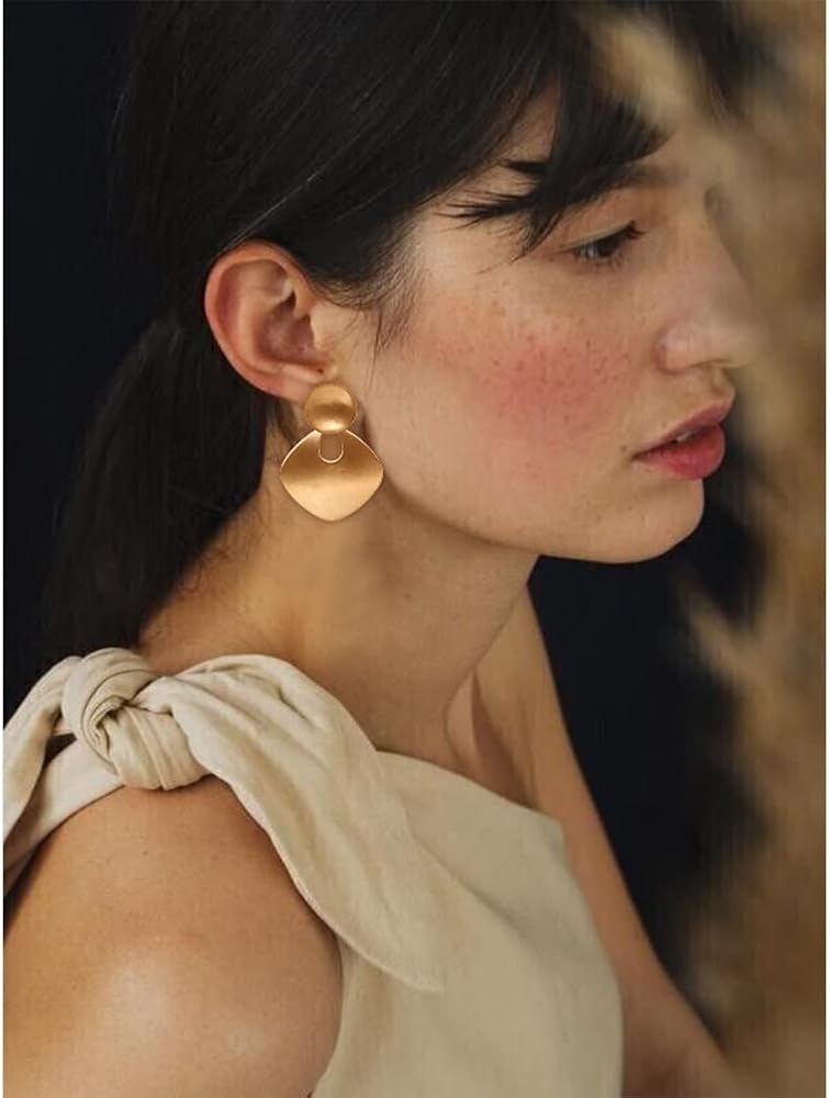 Unique design for gold dangle earrings: Differing from other gold earrings, these dangle earrings are made as matte gold and hammered, which can bring some extra elegance to the earrings.It is made in friendly material,nickel/lead/cadmium free.