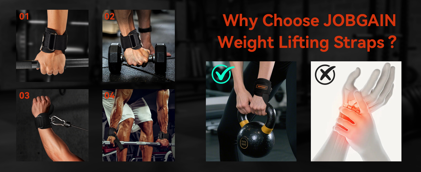 STURDY DOUBLE D-RING DESIGN: JOBGAIN weightlifting straps are built with heavy-duty stitching and a durable D-ring for secure performance. The reinforced design ensures a snug fit, providing reliable wrist support during gym training and weightlifting sessions.
