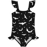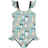 Adorable Ruffle Swimsuit: This cute one-piece swimwear for girls is designed with ruffles on the sleeve and bottom, Green Dogs Breed print, makes your kids more attractive and fashionable on the beach.