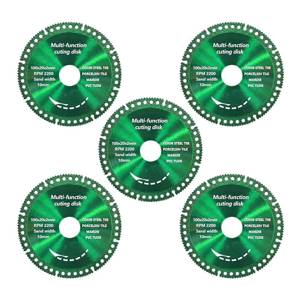5 Pack 4 Inch Indestructible Disc for Grinder, 7/8" Arbor Angle Grinder Diamond Cutting Disc, Cut Everything in Seconds, Multifunctional Cutting Blade for Metal, Stone, Wood,Tile, PVC Tube(Green)