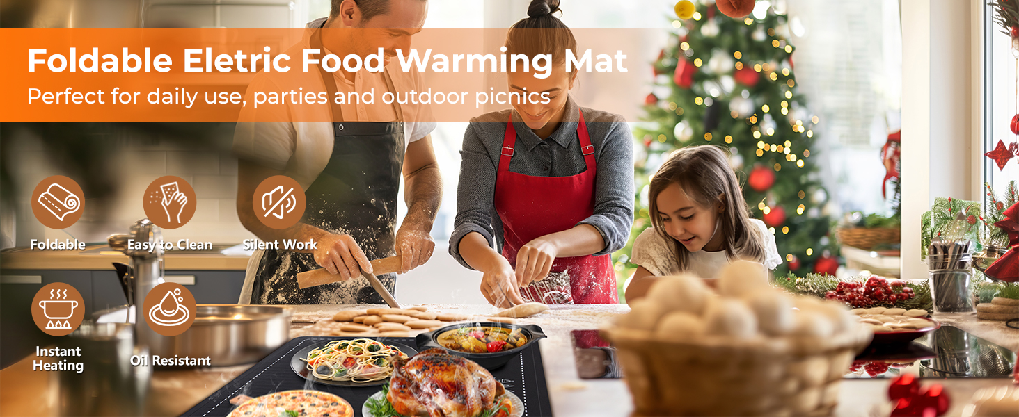 Food Warmer for Countertop: Enjoy quick, uniform warmth with our 500W electric food warming mat featuring advanced graphene heating technology. It evenly heats your dishes to the perfect serving temperature, making it ideal for your home kitchen, family dinners, buffets, and parties