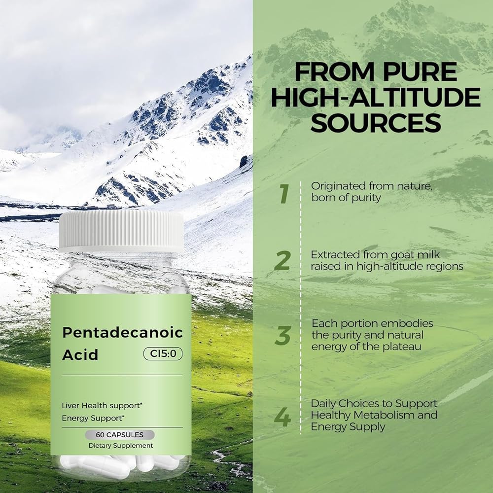 High-Altitude Sheep Milk for Superior Bioavailability: Our C15:0 is sustainably sourced from sheep grazing on pristine, unpolluted high-altitude pastures. This pure natural origin ensures exceptional purity while boosting bioavailability: your body absorbs and utilizes this nutrient far more effectively than synthetic C15:0 alternatives, maximizing its health-promoting benefits with every dose.