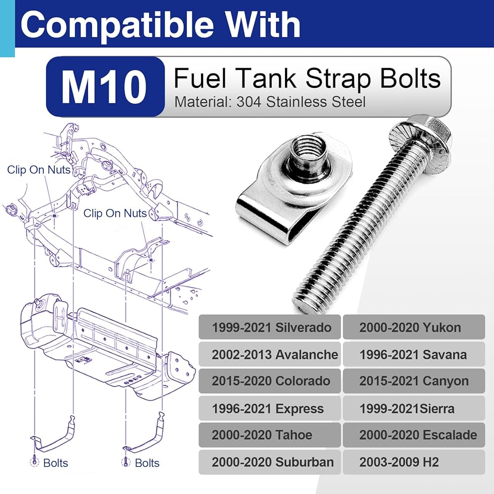 Replacement Part Numer:55157 Gm 11516770 11519894 15743078. Includes 2 Pieces Of Stainless Steel Fuel Tank Strap Bolts And 2 Pieces Of Locking Nuts For Replacing The Old Ones.