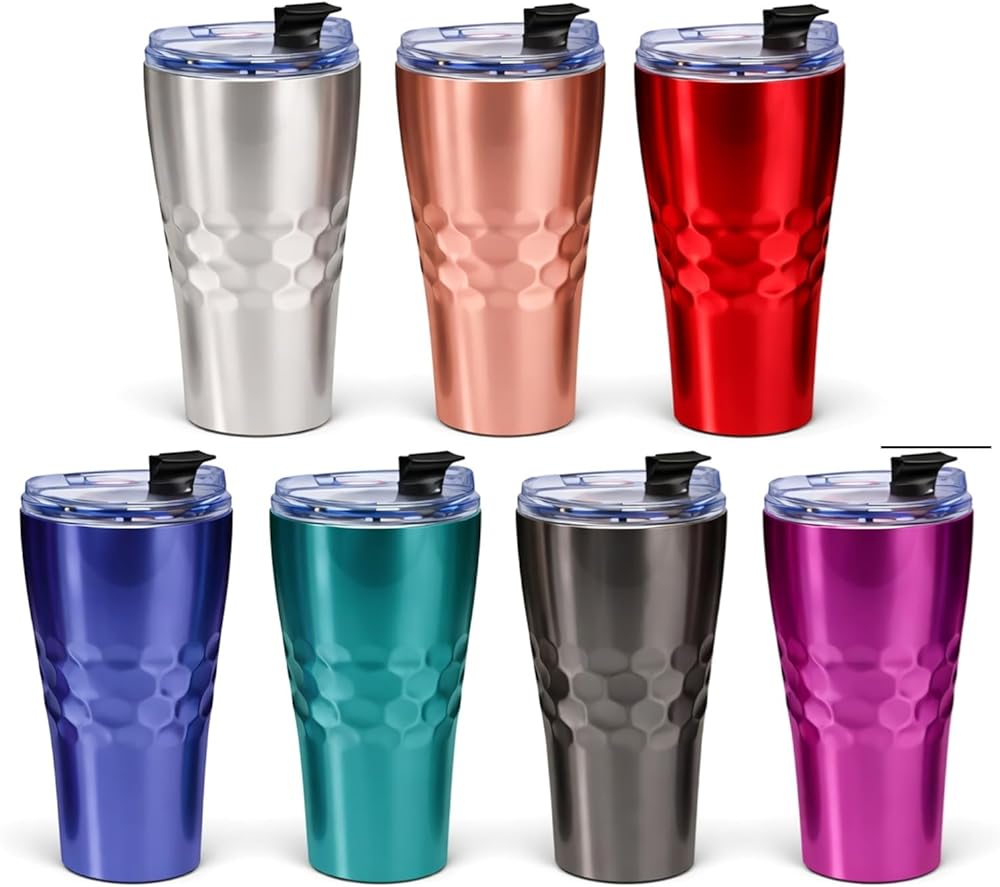 Keep your drink at the perfect temperature throughout your day. Double wall stainless steel vacuum insulation coupled with an interior layer of copper coating keeps your beverage cold for up to 24 hours and hot for up to 8 hours. Twist-texture design adds a great look along with a comfortable grip. Easy-to-use lid design slides open and close and is also straw compatible. 20 oz capacity is the perfect sipping size to get you through your day and is also single-serve compatible.