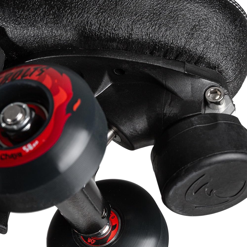 Light, comfortable, responsive, and ready to deliver a high-performance roller skating experience, the CHAYA Karma Pro Black is here and ready to rule the skatepark. The Karma Black Pro is a premium roller skate for skatepark-focused skaters. Light, comfortable, and responsive, this superb roller skate has a shell made of light, durable, and supportive fiberglass reinforced composite boot mounted to an equally strong and responsive Shari plate. Ready to help you push your limits, the CHAYA Karma Pro features XTNDR medium-wide trucks - solid forged aluminum trucks and 136mm wide CroMo steel axles. Ready for the skatepark right out of the box, these skates include a CHAYA asymmetrical grind block, CHAYA Controller toe stops, WICKED ABEC 9 bearings, and Jelly Interlock cushions. The CHAYA Karma Pro is truly the first of its kind, made specifically for the skatepark and built to withstand the highest jumps, longest grinds, and most extreme tricks on both the street and in the park.